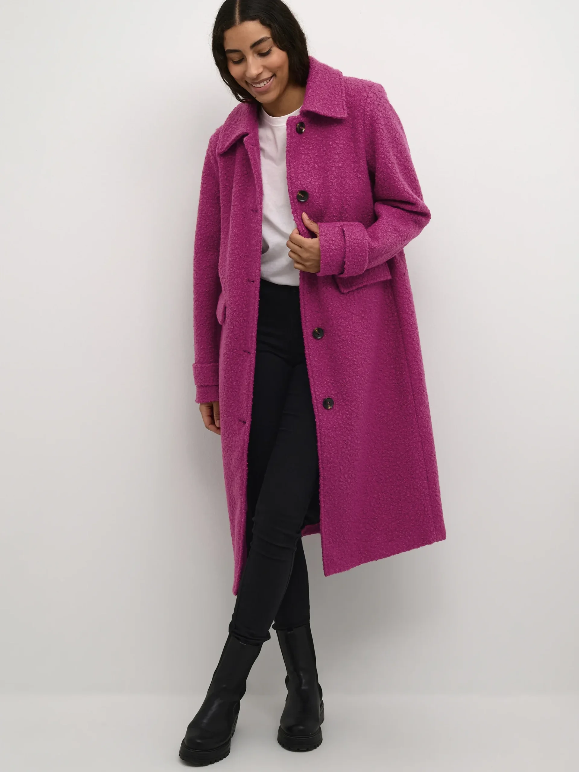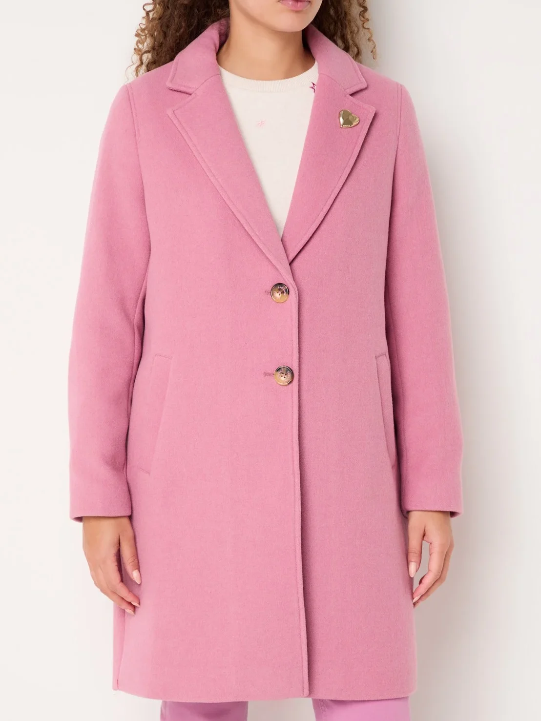 Roze mantel met veel knopen
